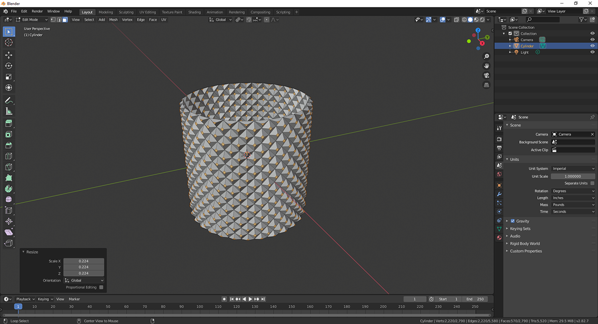 Knobs have knurls. A knurl is that hatch pattern found on cylindrical surfaces. They are easy to create on a lathe and, believe it or not, it is easy to model in Blender. Here’s how.