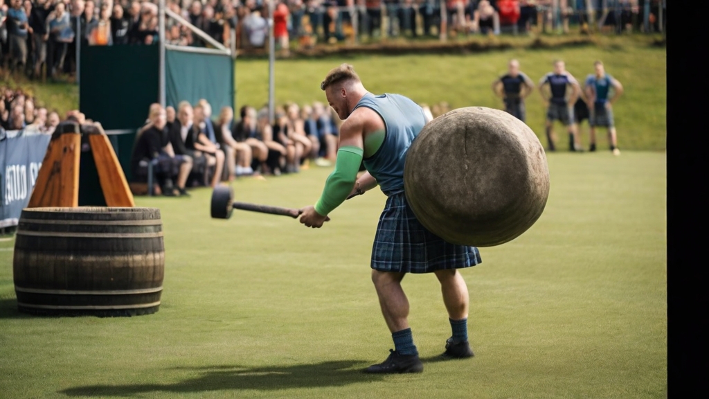 I tried to use AI to create an image or video of a Highland games competitor lifting a heavy rock. I’m new to these tools, so I’m not saying it can’t be done, but the results I got was ridiculous. Here’s one that made me laugh out loud. I asked it to make a guy in front of a barrel lifting a large rock.